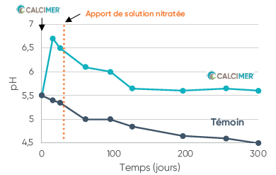 D’autre part, le CALCIMER® grâce à son action rapide et durable sur le pH du sol, a la faculté de réduire les émissions de protoxyde d’azote (N2O), l’un des principaux GES émis par l’agriculture, et ainsi atténuer les émissions globales de GES.