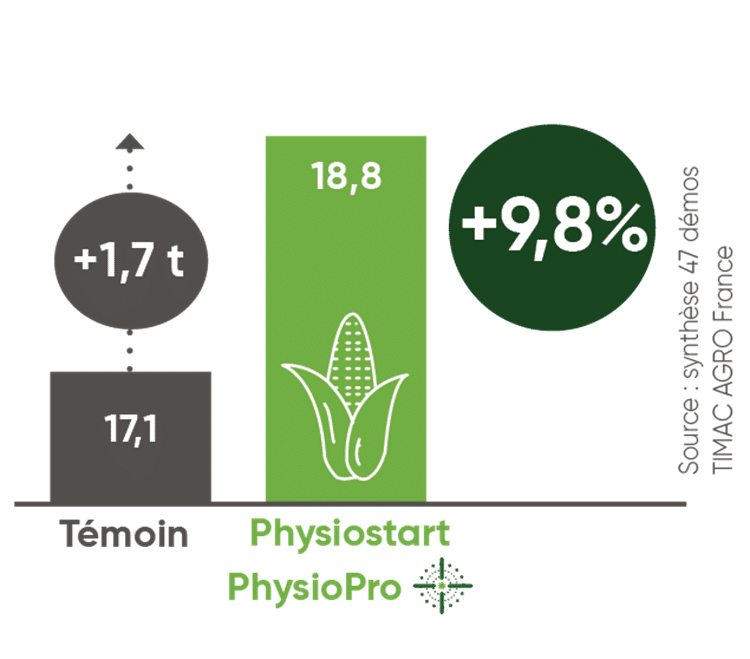 Outre la possibilité de réduire la quantité d’insecticides, nos engrais starters de la gamme PHYSIOPRO micro ont montré leur efficacité dans nos essais sur maïs ensilage. Ainsi, la synthèse de 47 démos conduites en France montrent un gain moyen de rendement de 9.8%.